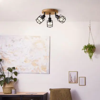 Brilliant Gwen Luce da soffitto Metallo Legna Nero | 350mm - Adatto per 3x E14