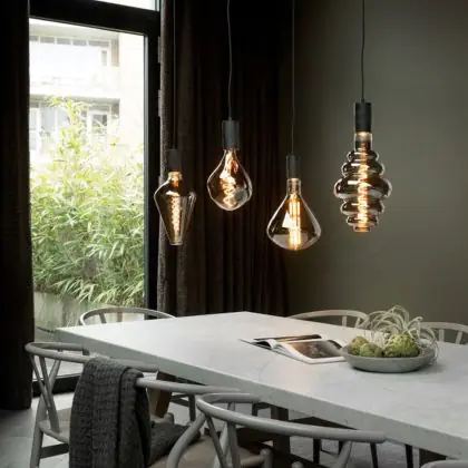 Con gli apparecchi dimmerabili si può rregolare l'intensità luminosa. Quando si abbassa la potenza della luce si consuma meno energia elettrica e si risparmia quindi sui costi energetici. Le lampade dimmerabili possono anche essere usate per creare un'atmosfera molto accogliente. Tieni presente che hai bisogno di un dimmer LED per regolare apparecchi LED.