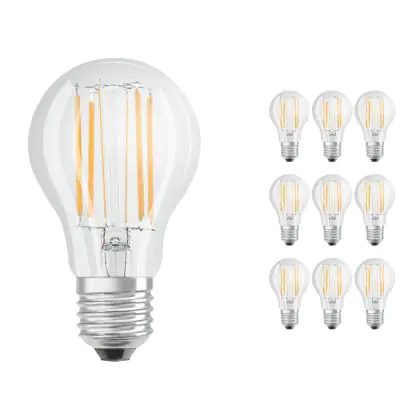 Confezione Multipack 10x Ledvance CLASSIC LED E27 Pera Filamento Chiara 7.5W 1055lm - 827 Bianco Molto Caldo | Dimmerabile - Sostitutiva 75W