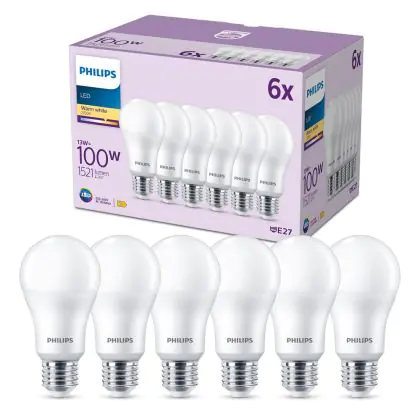 Grazie al suo consumo di soli 13W e la sua lunga durata di 15000 ore, puoi risparmiare fino al 60% di energia e con costi di manutenzione abbattuti. Le tradizionali lampadine a incandescenza durano solamente 1000 ore. Installare la lampadina LED è veramente facile, basta svitare la vecchia lampadina E27 ( una volta fredda ) e avvitare successivamente la nuova lampada di Philips con forma Pera nel portalampade. Questo prodotto di Philips è di qualità professionale.