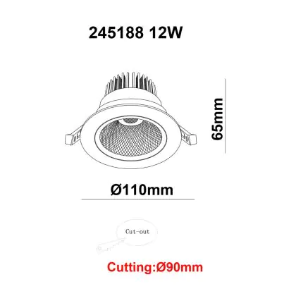 | Nome del fabbricante | White label LED Downlight Round Tiltable 12W 960lm 60D 930 UGR19 CutoutØ90mm FrameØ110mm | |