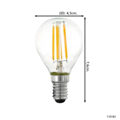 La lampada Eglo LED Sferica E14 Filamento Chiara 4.5W 470lm - 827 Bianco Molto Caldo | Dimmerabile - Sostitutiva 40W è il sostituto perfetto per le tue vecchie lampade 40W con attacco a vite piccolo E14 grazie alla sua tecnologia LED. Passare a LED ti offrirà molti vantaggi!