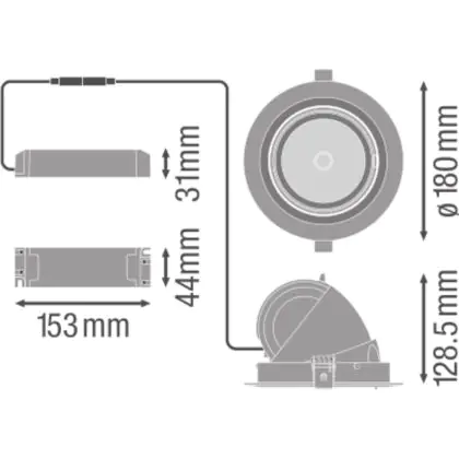 Descrizione Ledvance Faretti LED Vario Inclinabile 35W 3350lm 24D - 830 Luce Calda | Ritaglio 170mm