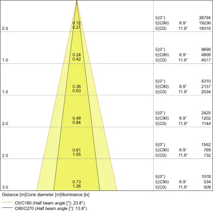 Apertura del fascio luminoso a 24° orientabile