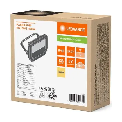 Ledvance Proiettore LED Aluminium Bianca 8W 1100lm 100D - 830 Luce Calda - | IP66 - Simmetrico