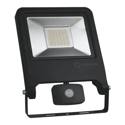 Ledvance Proiettore LED Value Nero 50W 4500lm 110D - 840 Bianco Freddo | IP44 - Sensore di movimento e luce - Simmetrico