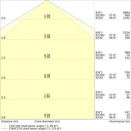 Il codice colore è una combinazione di resa cromatica (CRI) e colore della luce (Kelvin). La prima cifra indica la resa cromatica (1 = resa del colore molto bassa, 9 = massima resa del colore), mentre la seconda e la terza si riferiscono al colore della luce. Esempio: il codice colore 830 indica una buona resa cromatica (8) e luce bianca calda (3000K).