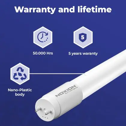 Questo prodotto ha una vita media utile di 50000 ore. In una ambiente business medio questa lampada durerà più di 15anni (52 settimane l’anno, 10 ore al giorno dal lunedì al venerdì). La durata della vita media utile è molto più lunga di un tubo standard, con una durata di 10.000 ore. Di sicuro avrai 5 anni Lampadadiretta.it di totale garanzia.