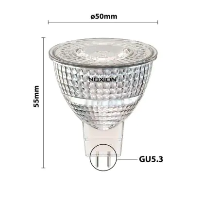 La Noxion Faretti LED GU5.3 MR16 6.1W 621lm 36D - 840 Bianco Freddo | Sostitutiva 50W è perfetta per la sostituzione della classica lamapda alogena50W GU5.3 con colore della luce 840 Bianco Freddo. Questa lampadina ha una forma Spot con un diametro di 50mm. La distanza tra I due pins è di 5.3mm. Queste lampade hanno bisogno di un trasformatore poiché operano a 12V. I trasformatori possono essere trovati in "Accessori" su questa pagina. Qual’è il trasformatore adatto? Dipende dal numero di lampade che si vuole installare. Il nostro servizio di vendita e assistenzati ti aiutera nella scelta. Passare a LED offre molti vantaggi!
