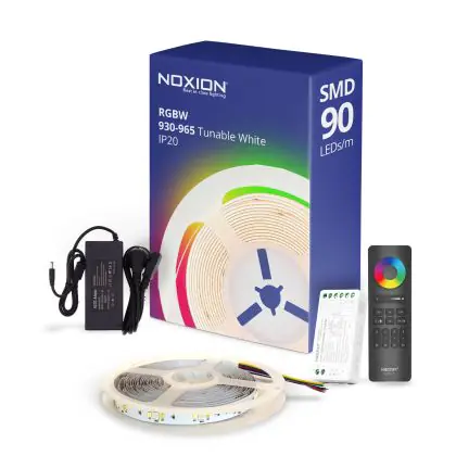Noxion Strisce LED Naga 5 Metro Set completo - 24V - 90LEDs/m - 12W/m - RGBW - 930-965 Regolabile Bianca | 12mm - IP20 - Miglior Resa Cromatica - SMD2835+SMD5050