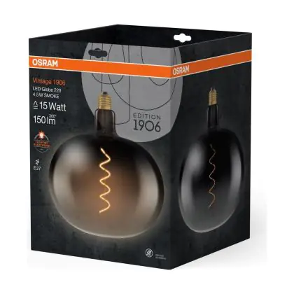 La Osram Vintage 1906 LED Classic Globe LED E27 Special Filamento Smoke 4.5W 150lm - 818 Bianco Molto Caldo | Sostitutiva 15W è la perfetta sostituzione per la tua lampada convenzionale 15W con attacco E27 grazie alla sua tecnologia LED. Passare a LED ti offrirà tanti vantaggi!