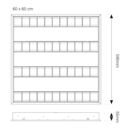 Descrizione Pannello LED Noxion Louvre Excell G2 60x60cm 3000K 34W UGR<15 Ghiaccio Riflettore | Luce Calda - Sostitutiva 4x14W