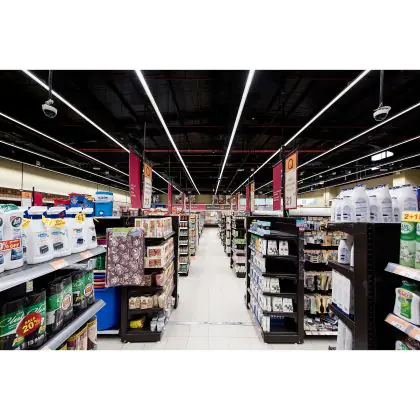 Grazie alla loro potenza luminosa, che va dai 3.000 ai 24.000 lumen, i sistemi a canalina LED si possono usare in uffici, capannoni di produzione, magazzini, ecc. Per le stanze con soffitti alti dai 4 m in su, consigliamo di scegliere apparecchi che abbiano una potenza luminosa di almeno 10.000 lumen. Verifica poi che la temperatura di colore della luce di 4000K - Bianco Freddo sia adatta al lavoro da svolgere. Una luce di 4000K è adatta a molti ambienti di lavoro, ma 6500K può essere più appropriata per sale di disegno tecnico o laboratori.