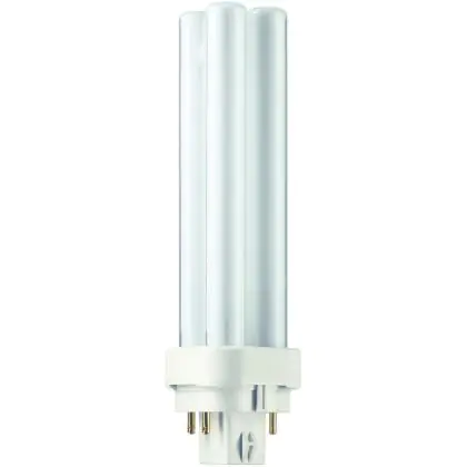 Philips PL-C 13W 827 4P è una lampada fluorescente compatta a basso contenuto di mercurio efficiente con attacco a 4 pin G24q-1. Questa lampada firmata Philips assicura prestazioni luminose fino a 10.000 ore che equivalgono a 3 anni con un utilizzo giornaliero di 8 ore.