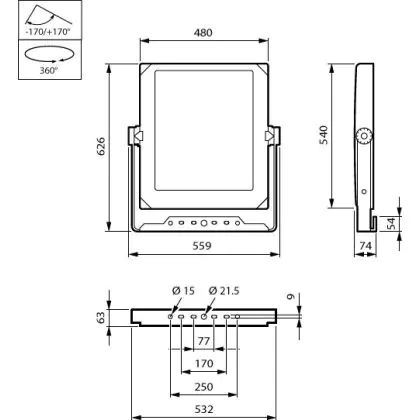 Questo apparecchio può essere usato sia in spazi interni che in spazi esterni, poiché ha indice di protezione contro l'ingresso di acqua e polvere IP66. In generale, un apparecchio con IP44 è resistente a schizzi di acqua e umidità, e può quindi essere installato in spazi esterni molto umidi o esterni riparati, come sono una tettoia. Un apparecchio che invece verrà esposto a intensi getti di acqua deve avere almeno IP54. Questa lampada ha anche un indice di resistenza a urti e impatti di IK09 - 10 Joule