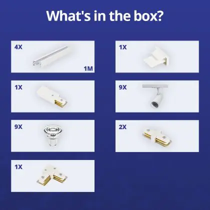 | Nome del fabbricante | Complete L shaped 1-Phase Track Set White incl. 9x Spot fixture + GU10 2700K 3W Dim – 2 x 2 meters i | |