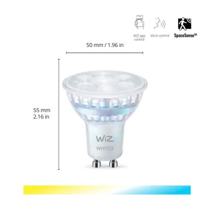 Puoi risparmiare fino al 90% tra il risparmio di energia e I costi di mantenimento grazie al basso consume di soli 5W e la lunga vita media utile di 15000 ore, comparandola invece con una lampada alogena GU10 con la sola durata di 2.000 ore. Inoltre le lampade LED non producono raggi IR e raggi UV dannosi per noi esseri umani tutto questo senza neanche produrre calore! Installarla è veramente semplice: ruotare la vecchia lampada GU10 di un quarto e rimuoverla dall’attacco. Successivamente inserire la lampada LED GU10 nell’attacco e girarla di un quarto per installarla. Questa è lampada di alta qualità WiZ e parte da un prezzo di . Puoi usare questo prodotto come desideri grazie alla nostra garanzia totale di2 anni da Lampadadiretta.it.